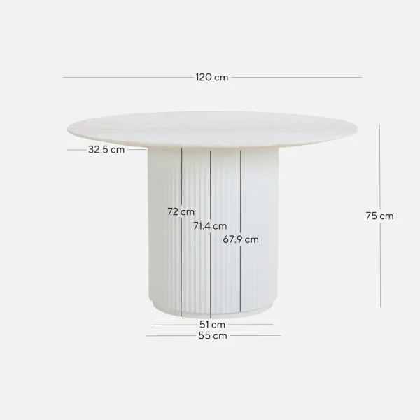 CDT8945 DW 1.2m Round Travertine Dining Table – White