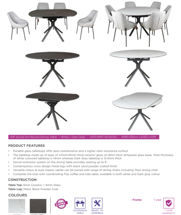 RIFF EXT DIN TABLE 90/135X135X76CM-D.GRY(2CTN)